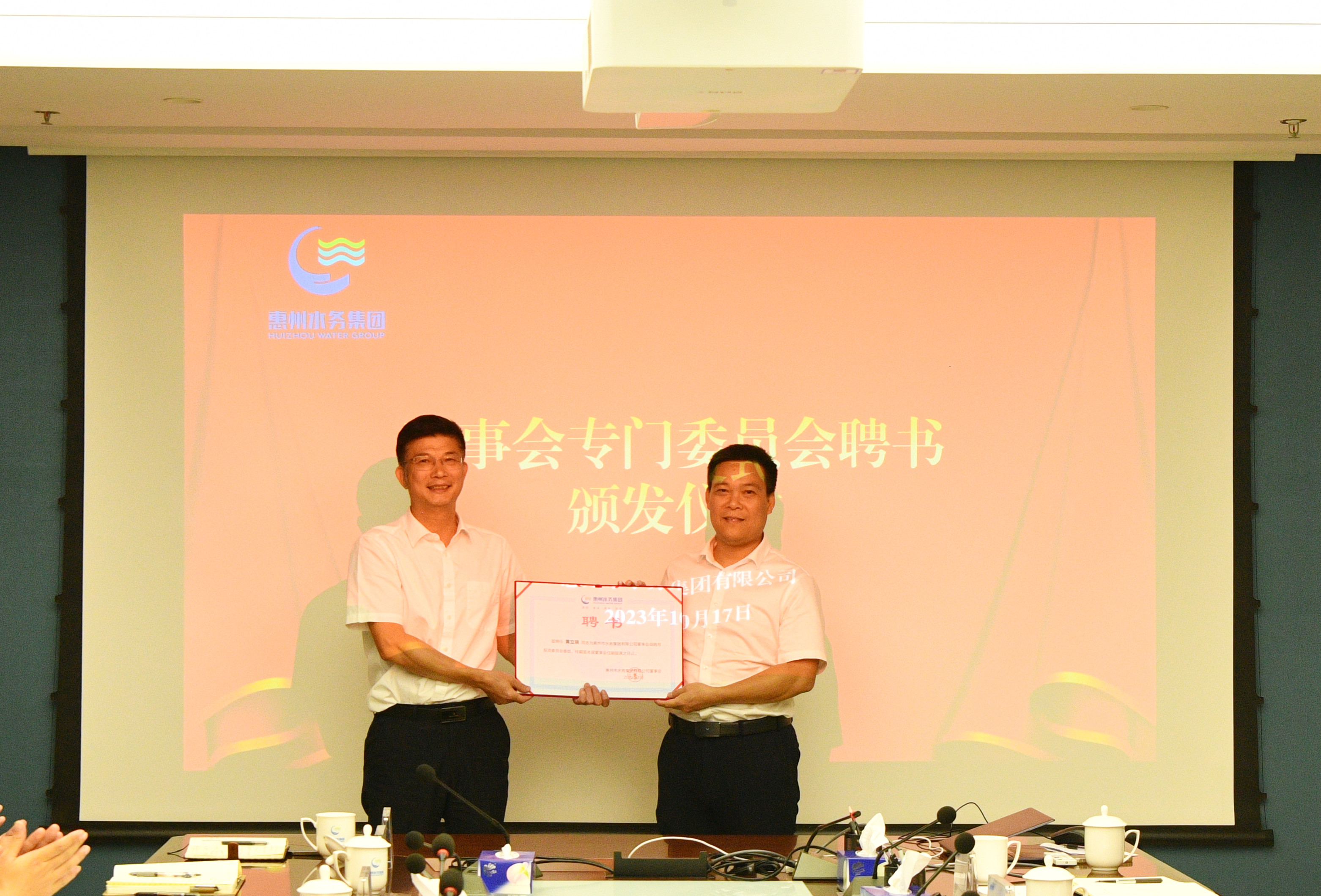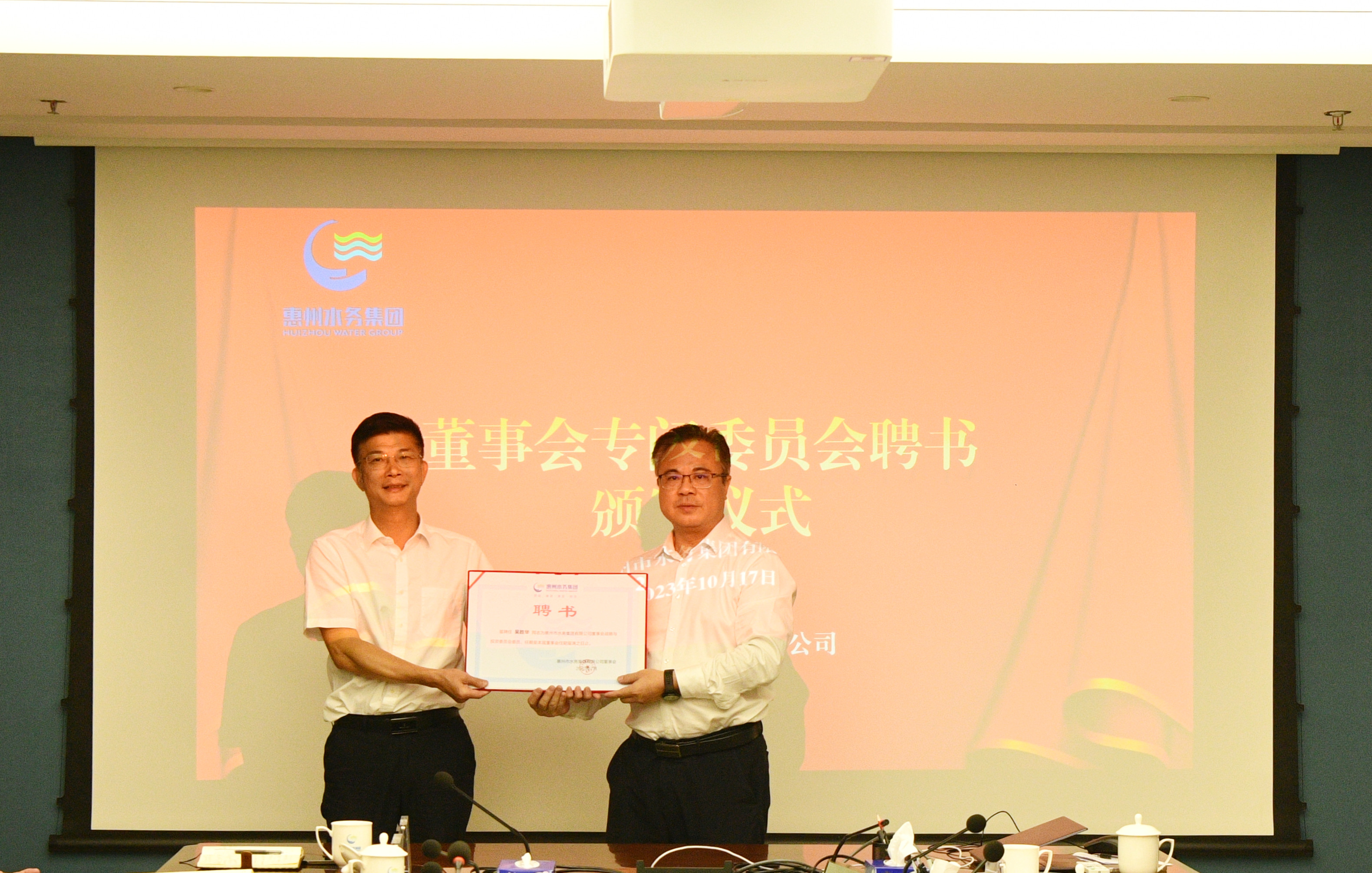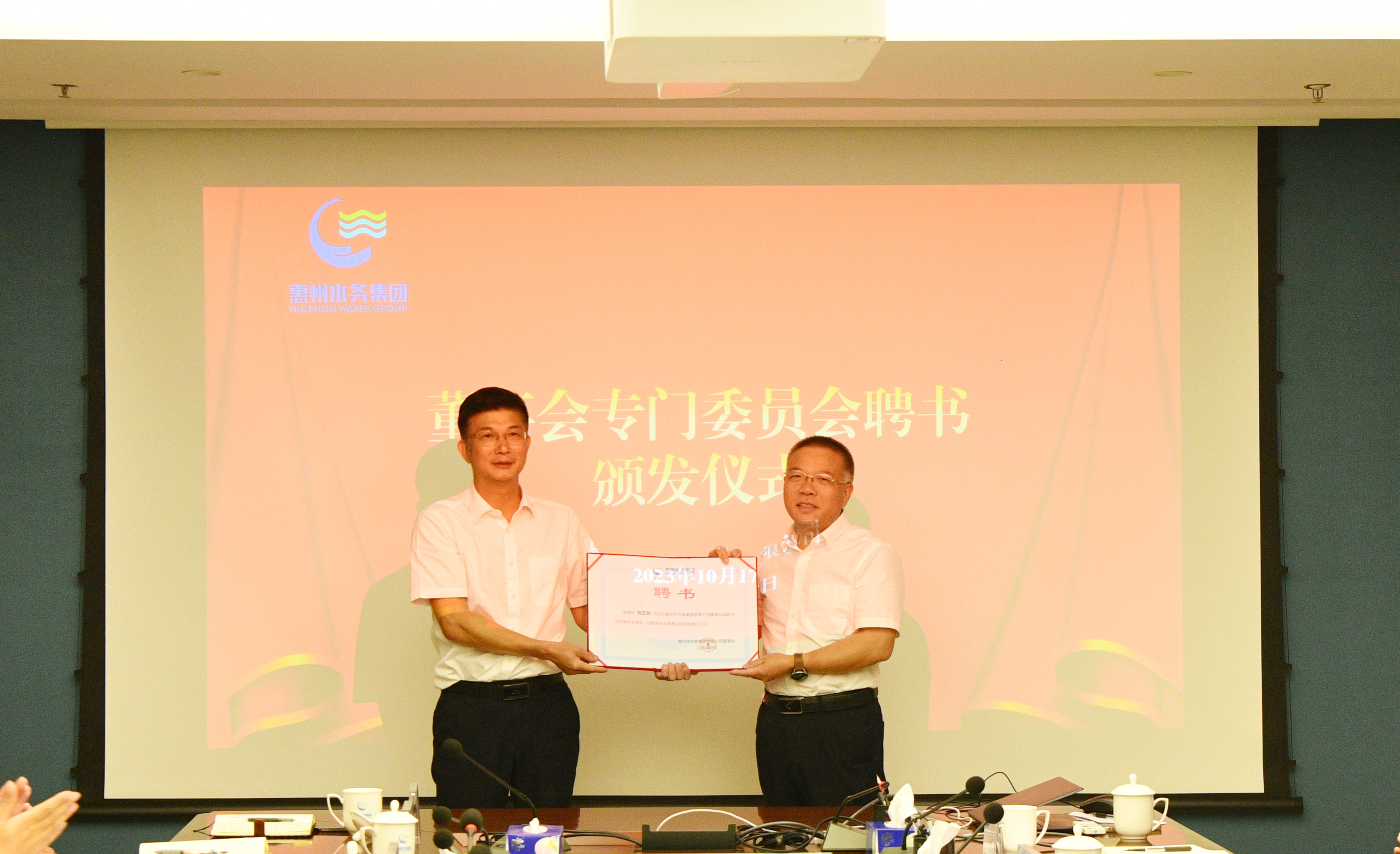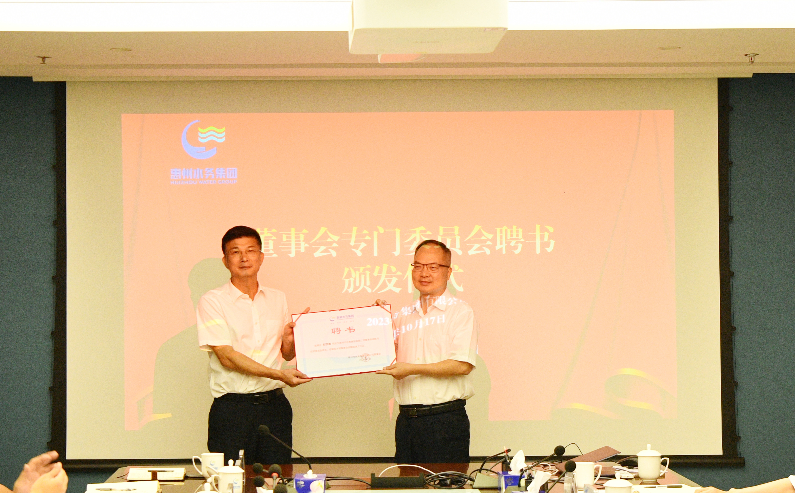10月17日下午,市水務(wù)集團召開了2023年度董事會第二次定期會議,審議授權(quán)放權(quán)有關(guān)工作等議案,并舉行了董事會專門委員會聘書頒發(fā)儀式。