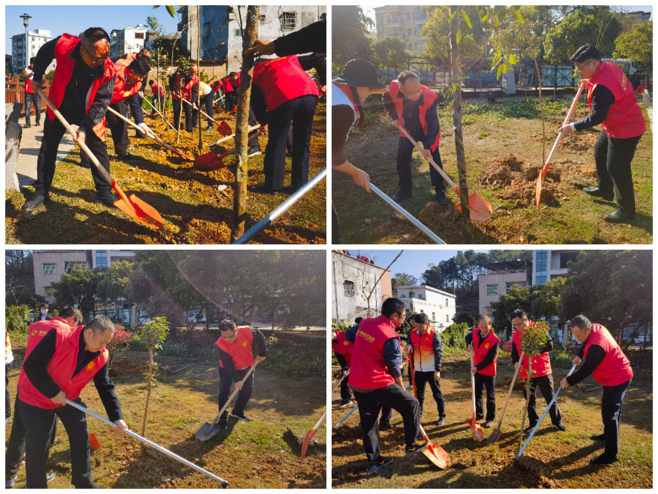 在植樹點上,黨員同志們身著紅馬甲,分工明確,干勁十足,精心細(xì)致栽種每一棵樹苗,共同為鄉(xiāng)村增綠添彩,以實際行動踐行新時代“綠水青山就是金山銀山”理念。