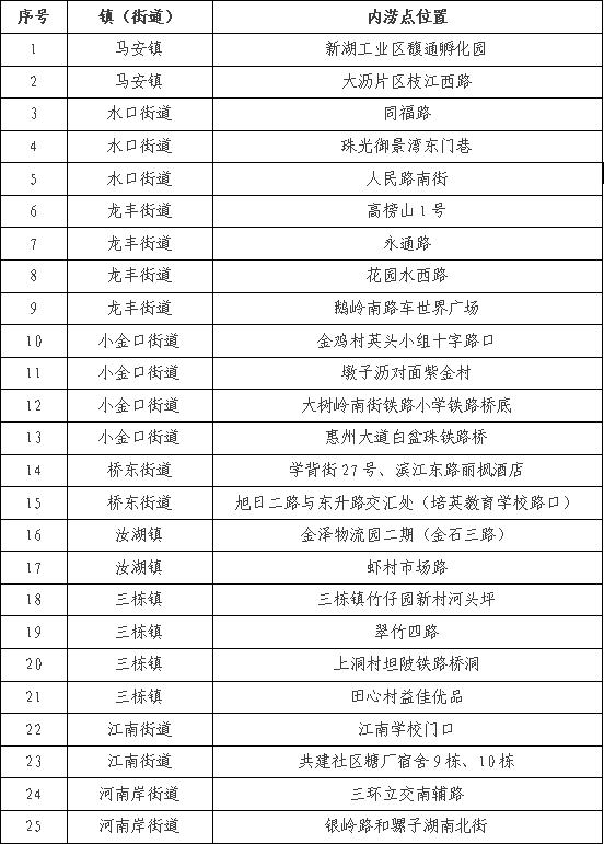 惠城中心區(qū)內澇積水點整治工程位置表