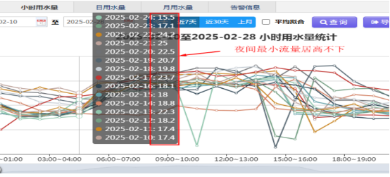 位于三環(huán)南路的 TCL 翠園小區(qū),水壓不穩(wěn)的情況時(shí)有發(fā)生。我司通過分區(qū)計(jì)量系統(tǒng)與營(yíng)銷系統(tǒng)的比對(duì)分析,發(fā)現(xiàn)該小區(qū)夜間最小流量異常偏高,初步判定存在物理漏損。