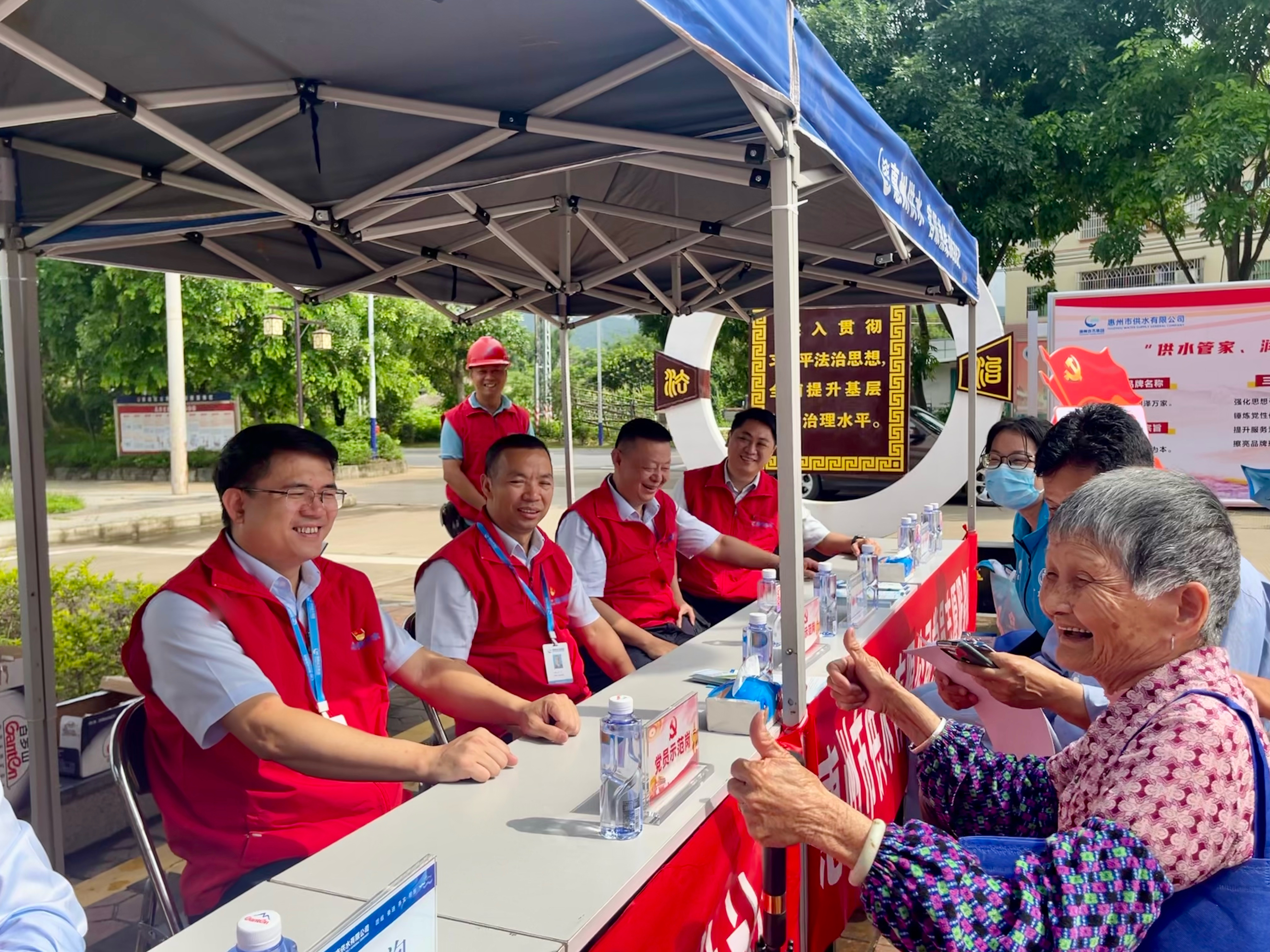自2022年4月接管汝湖供水市場以來,市供水公司堅持以人民為中心的發(fā)展思想,推動黨建與業(yè)務(wù)深度融合,通過接駁汝湖供水管網(wǎng)、實施舊管網(wǎng)改造等措施,使汝湖片區(qū)的水質(zhì)、水壓得到明顯改善,確保群眾用上安全水、優(yōu)質(zhì)水。為進一步了解基層黨建和業(yè)務(wù)工作的開展情況,調(diào)研組一行首先來到汝湖鎮(zhèn)上圍村文體廣場“供水服務(wù)進農(nóng)村”活動現(xiàn)場,該項活動是營銷一黨支部踐行“供水管家、潤澤萬家”黨建品牌提供的其中一項暖心服務(wù)。活動當天,營銷一支部汝湖分公司黨小組與上圍村村委開展結(jié)對共建,結(jié)合“主題黨日”活動,組織供水管家及黨員志愿者走進農(nóng)村主動傾聽群眾聲音,向村民科普日常用水常識,提供用水報裝、管道維修、抄表收費等便民服務(wù)。公司領(lǐng)導(dǎo)上前與村民進行面對面交流,認真聽取意見和建議,耐心解惑釋疑,聽到村民反映因水表殘舊存在用水問題時,立即派人到現(xiàn)場研究解決,督導(dǎo)換表施工作業(yè),收獲了當?shù)厝罕姷膹V泛好評。