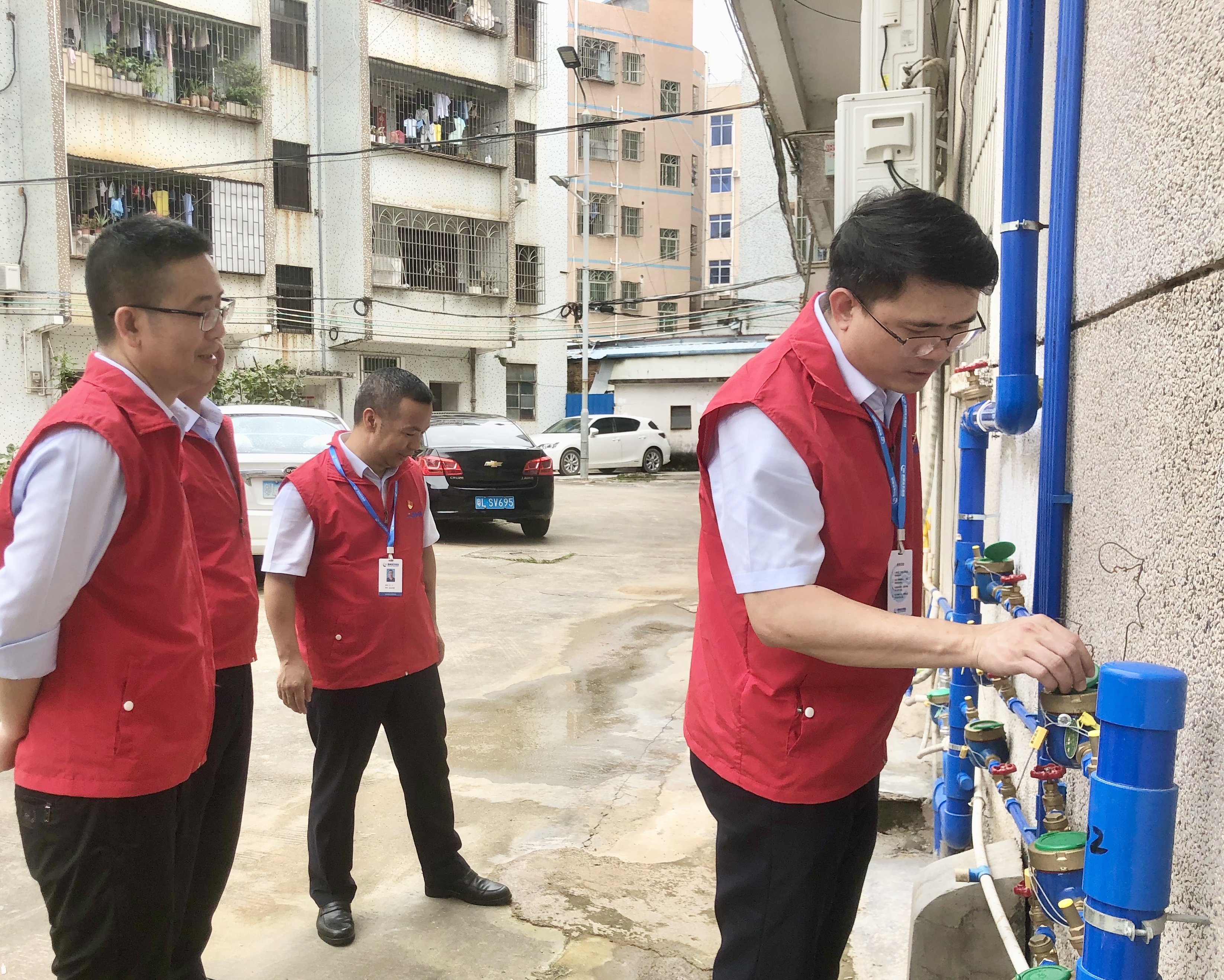 隨后,調(diào)研組實地觀摩已實施改管換表的汝湖鎮(zhèn)政府住宅小區(qū)。今年以來市供水公司以點帶面深入推進“供水管家、潤澤萬家”黨建品牌創(chuàng)建工作,營銷一黨支部所屬各營業(yè)網(wǎng)點分別組建供水管家隊伍,與抄表員組成網(wǎng)格服務(wù)員隊伍,協(xié)同推進網(wǎng)格化管理、精細化服務(wù)。針對汝湖鎮(zhèn)政府住宅小區(qū)長期存在的水壓低、老舊管道引發(fā)水質(zhì)問題多和水表殘舊等狀況,汝湖分公司前置性做好小區(qū)供水情況摸底調(diào)查,及時推出改管換表方案,僅用一周時間就完成了整個小區(qū)改管換表任務(wù),近50戶住戶實現(xiàn)用水無憂。朱志濤詳細了解該片區(qū)供水管家隊伍及網(wǎng)格化服務(wù)分工,認真查看改造后的管道及水表運行情況,邊調(diào)研、邊梳理,就深入推進網(wǎng)格化服務(wù)和供水管家黨建品牌創(chuàng)建工作提出指導(dǎo)意見,要求通過深化黨建品牌創(chuàng)建,形成“全方位、管家式”供水服務(wù)體系,持續(xù)提升服務(wù)質(zhì)量、優(yōu)化營商環(huán)境,助力構(gòu)建共建共治共享的社會治理新格局。