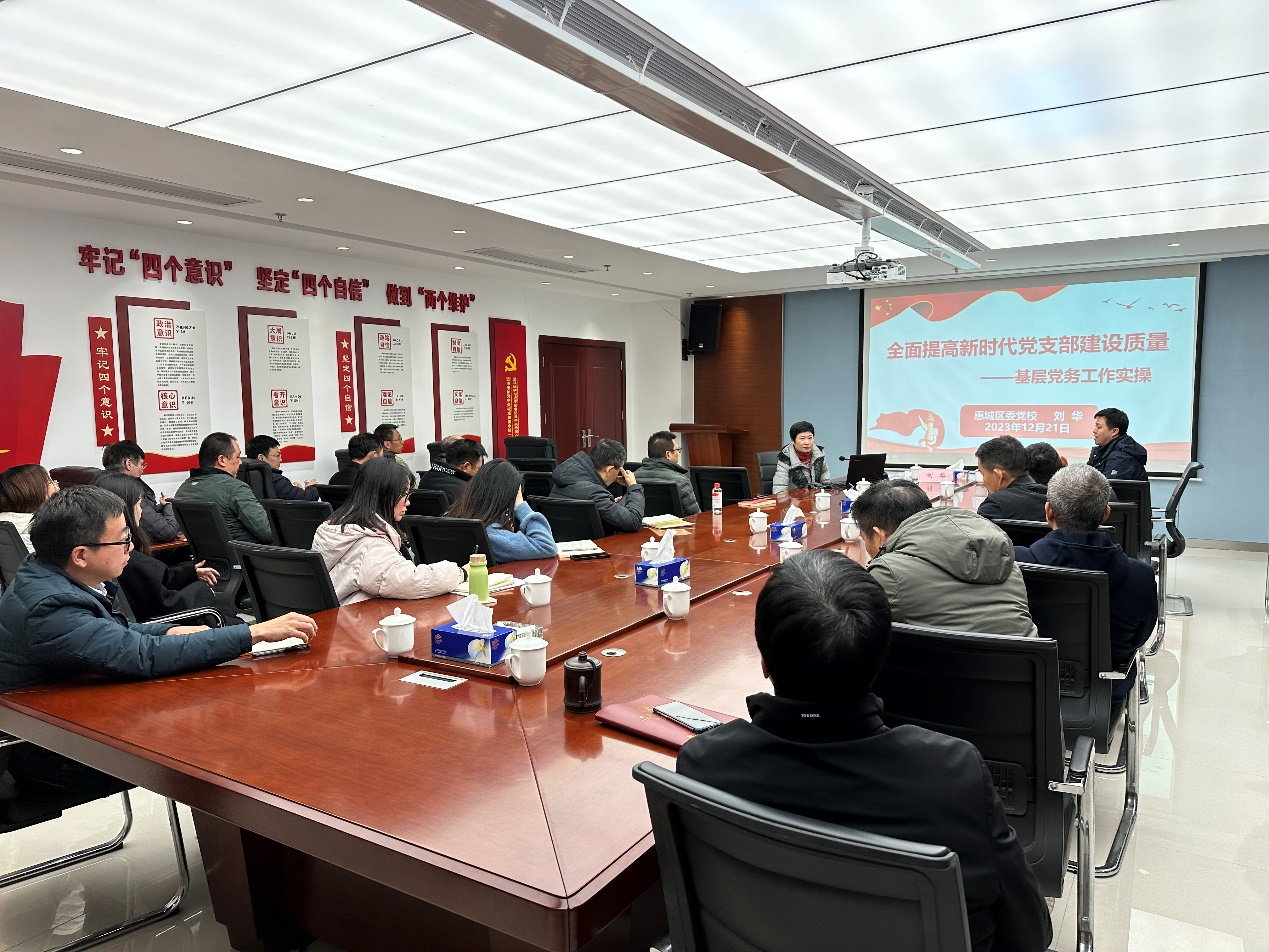 本次培訓還邀請了惠州市委宣講團成員、惠州工程職業(yè)學院馬克思主義學院院長理陽陽和惠城區(qū)委黨校副校長劉華作專題講座,組織學員赴中化學南方運營管理有限公司惠州新材料產業(yè)園工程項目經(jīng)理部黨支部參觀學習,并圍繞如何做好新時代基層黨建工作開展交流研討。